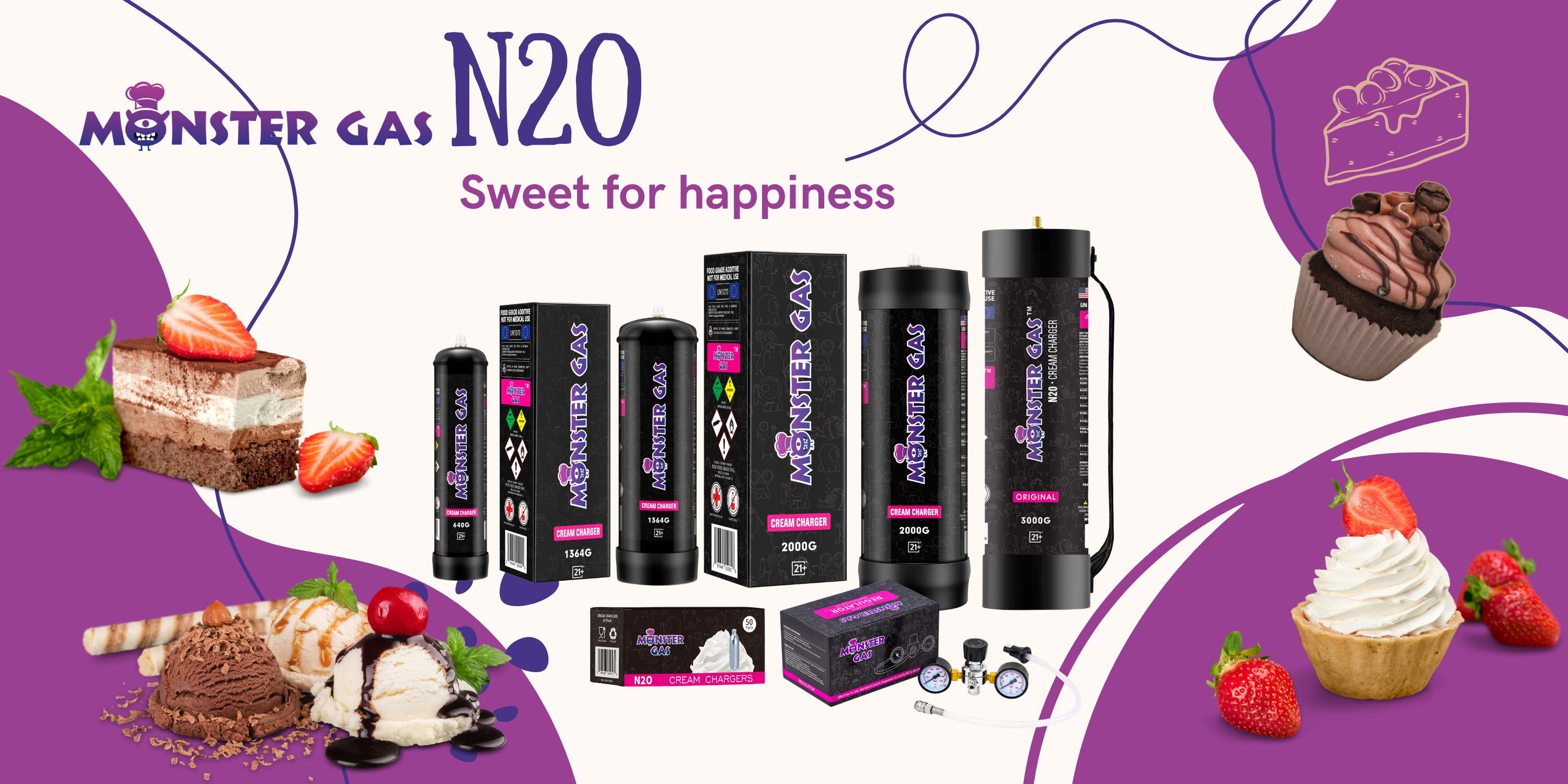 MONSTER GAS 2.2L N2O Whipped Cream Chargers, 1364G Whip Cream Charger, Nitrous Oxide Tank